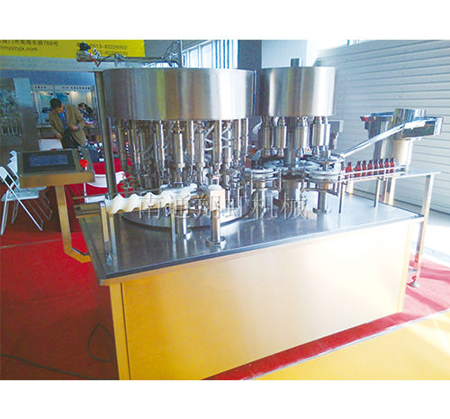 本機是液體生產(chǎn)線中的灌封主機,主要用于對塑料瓶進行灌裝、上蓋、封口。采用螺桿進瓶,計量泵轉(zhuǎn)盤式灌裝,具有無瓶止灌,自動補液功能,自動拾蓋上蓋、旋蓋(或軋蓋),送瓶可靠,不易產(chǎn)生泡沫。電磁振蕩送蓋,上蓋率高,該機灌裝封口合二為一,設(shè)計先進,結(jié)構(gòu)緊湊。